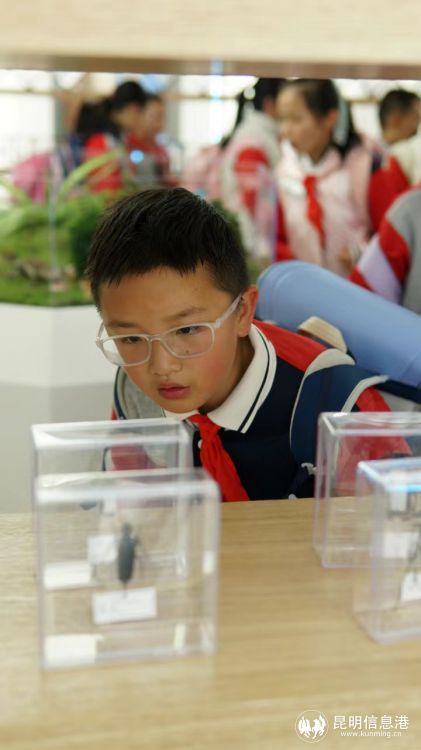 活動現(xiàn)場,來自中科院植物研究所和云南林業(yè)科學(xué)院的各位植物學(xué)大咖親自助力生物多樣性科學(xué)知識普及。 昆蟲標(biāo)本館內(nèi),云南省林科院周楠研究員向?qū)W生們普及昆蟲的相關(guān)知識,知道了云南"動物王國"的由來,以及昆蟲與其他動物的區(qū)別、蝴蝶與飛蛾的區(qū)別,既普及了科學(xué)知識,又激發(fā)了大家探究自然的興趣。