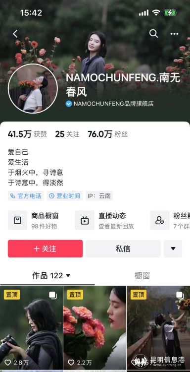 抖音電商鮮花品牌“南無春風(fēng)”賬號頁面截圖。