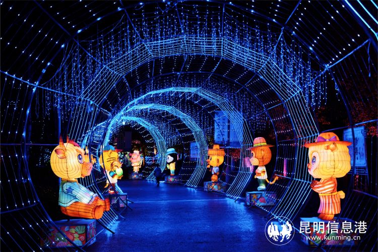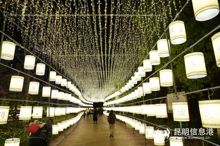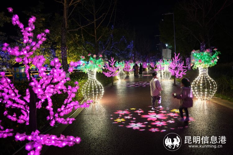 “玩場挺多的!有龍?jiān)氐牟薀?,也有我們云南的大象、蘑菇、昆蟲燈,還有大舞臺(tái)可以看表演?!崩ッ魇忻駝⑴勘硎?,自己就住在瀑布公園附近,吃了晚飯一家人就來散步觀燈,她正在拍攝視頻告訴親友們這個(gè)昆明夜游新玩場。