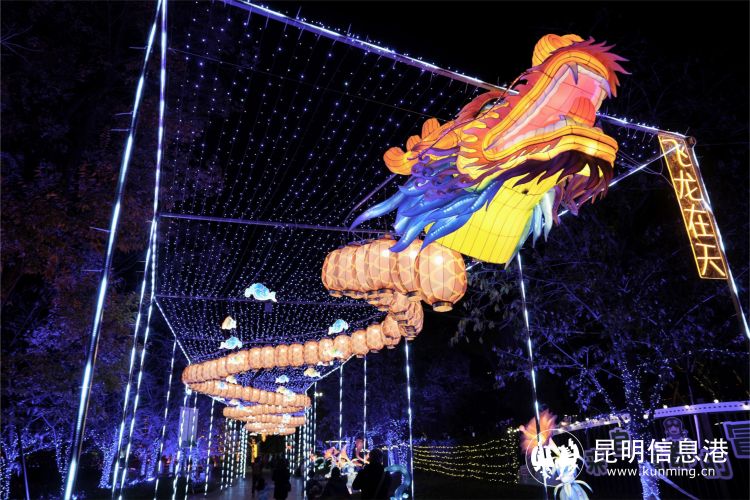 活動(dòng)由昆明市和盤龍區(qū)兩級文旅部門聯(lián)合地方企業(yè)舉辦,顛覆傳統(tǒng)的燈光藝術(shù)表現(xiàn)形式,將彩燈以創(chuàng)新的姿態(tài)呈現(xiàn)在大眾面前。結(jié)合現(xiàn)代科技與多媒體互動(dòng)體驗(yàn),把古老的東方神話——盤龍與瀑布相融合,營造出一種時(shí)空交響的奇幻效果。