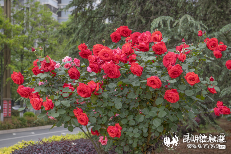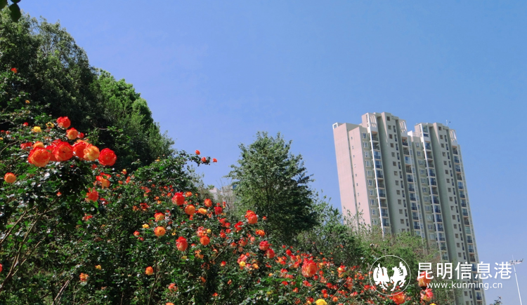 五月,在聯(lián)大立交口兩旁的山坡,橘粉色的月季花將這里裝扮成一片月季花海。網(wǎng)友@DQ熊貓/攝