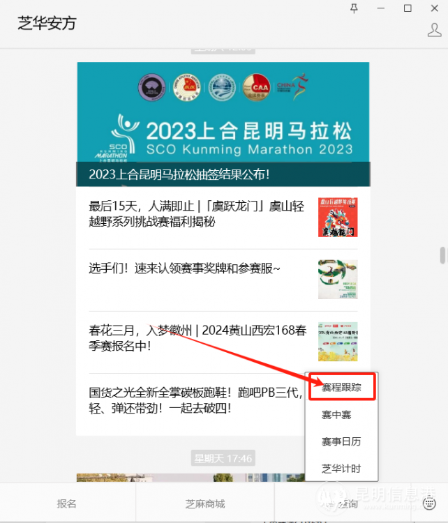 昆明信息港訊 2023上合昆明馬拉松將于2023年12月31日正式鳴槍開跑開跑!記者從組委會(huì)獲悉,今年服務(wù)升級(jí),結(jié)合往年參賽選手和后援團(tuán)市民的需求,特意為跑者和觀賽者推出賽程跟蹤服務(wù),專為幕后親友團(tuán)而來(lái),可以一鍵追蹤最牽掛的人。