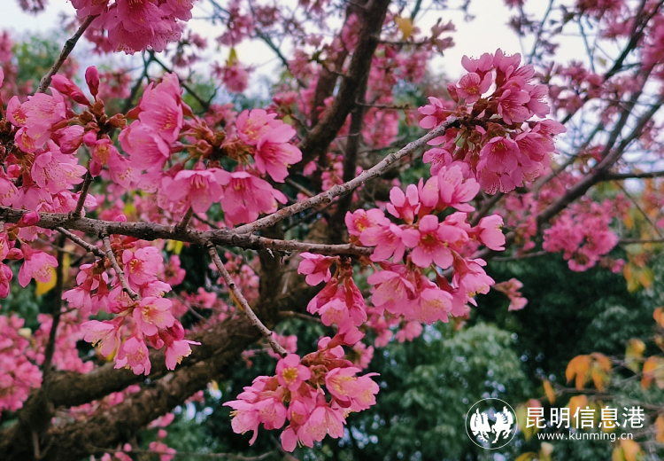 地圖指引,云南白藥街路段打造了長2公里的冬櫻花大道