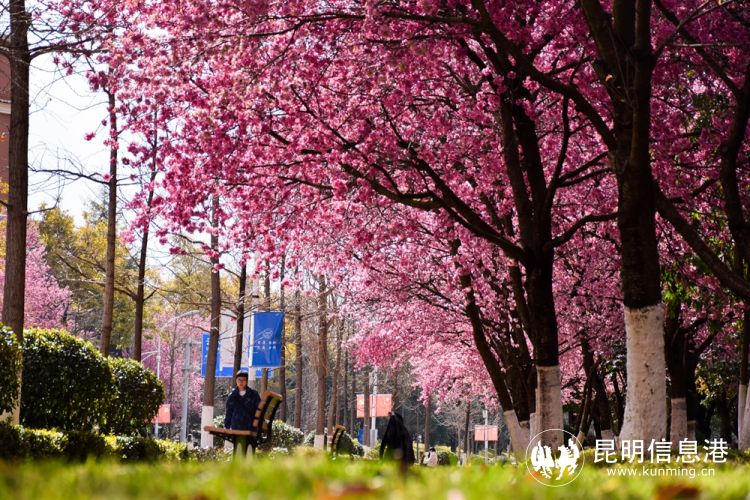 昆明理工大學呈貢校區(qū)櫻花開。網(wǎng)友@達昆玉/攝