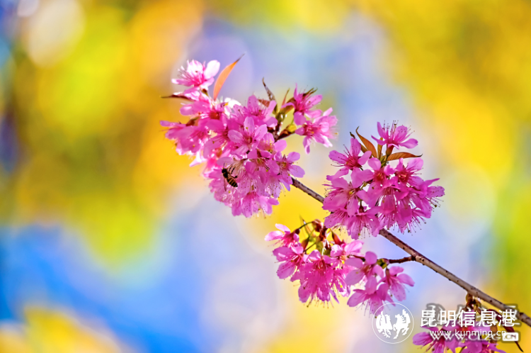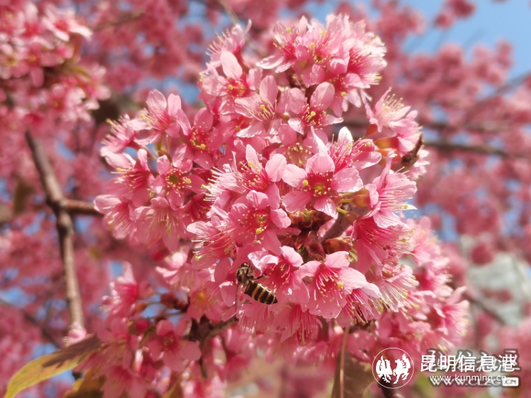 昆明理工大學呈貢校區(qū)櫻花偶遇一群小蜜蜂。網(wǎng)友@達昆玉/攝