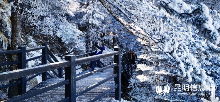 又到一年冰雪季,祿勸轎子山銀裝素裹、玉樹瓊花,為冬季的昆明增添了一道北國雪景。