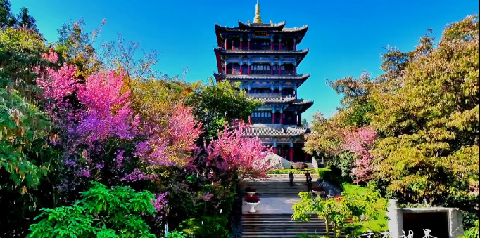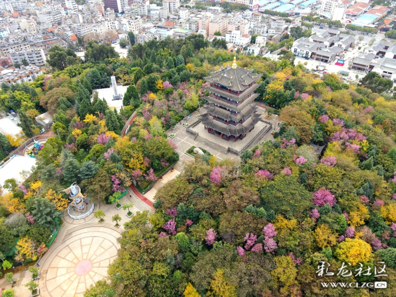 呈貢三臺(tái)山公園冬櫻花浪漫盛開。網(wǎng)友@ 言成視界/攝