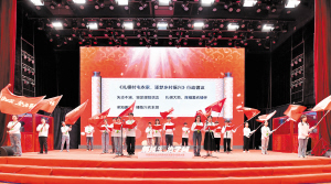 參賽學(xué)生代表發(fā)《扎根村屯農(nóng)家,逐夢鄉(xiāng)村振興》行動倡議。 賽事組委會供圖