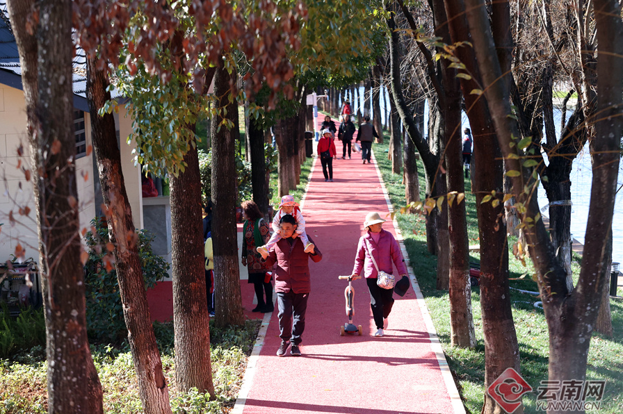 1月9日,昆明市船房河河水潺潺,河岸冬櫻花盛放、滇樸披金,一條紅色步道從邊防路和福堤路交叉口蜿蜒“鋪”到了滇池閘口路。一路上,路面平坦、風(fēng)景宜人、環(huán)境優(yōu)美,吸引了不少市民前來散步、遛狗、賞景。據(jù)了解,船房河?xùn)|岸步行道經(jīng)過一年整修,現(xiàn)已向市民開放,全長(zhǎng)1.5公里,步行30分鐘可到達(dá)滇池。船房河作為流入滇池的河道,通過治理、美化、河道沿岸已成為市民休閑徒步的首選之地。