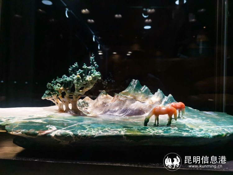 此外,還展陳有出產(chǎn)于獨(dú)龍江沿岸的多款和田玉雕刻作品。博物館二樓展示區(qū)主要以來自怒江沿岸出產(chǎn)的“彩云玉”大型雕刻作品為主,其中多件展品為“天工獎(jiǎng)”金獎(jiǎng)作品,設(shè)計(jì)雕刻藝術(shù)造詣極高,對觀眾全面了解云南怒江礦物珠寶分布、產(chǎn)業(yè)發(fā)展和藝術(shù)欣賞多方位都有較強(qiáng)的服務(wù)性。