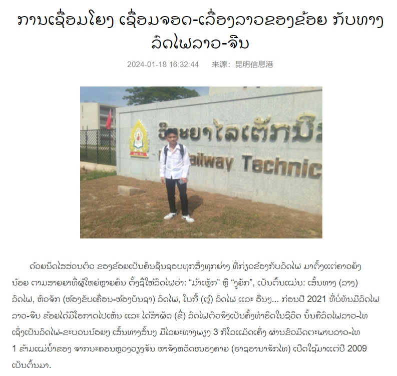 編者按: 在中老鐵路開通兩周年之際,昆明信息港“薩拜迪”中老雙語站點(diǎn)和彩龍社區(qū)共同發(fā)起了“互聯(lián)互通 命運(yùn)與共——‘我與中老鐵路的故事’”征文活動(dòng),邀請(qǐng)廣大市民、全國和海內(nèi)外朋友共同參與,分享自己與中老鐵路的故事,書寫中老友誼之路的美好篇章,為兩國友好關(guān)系添磚加瓦,共同構(gòu)筑更加美好的未來!昆明信息港將從網(wǎng)友投稿中挑選優(yōu)秀作品進(jìn)行選登。