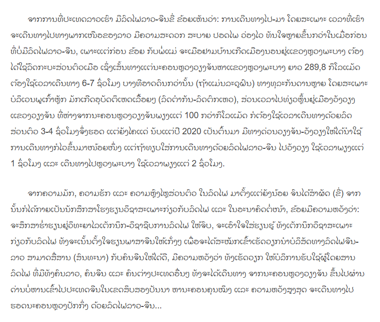 2021年12月3日,中老鐵路正式開通,首趟列車“瀾滄號(hào)”投入運(yùn)營。我相信,不僅我,還有很多人都為老撾能夠擁有這樣一條長途列車而感到興奮和高興。中老鐵路北起中國西雙版納州的磨憨口岸,南至萬象,途經(jīng)瑯南塔、烏多姆塞、瑯勃拉邦、萬象,并與萬象—廊開—曼谷站相連。開通一個(gè)月后,我?guī)е赣H和弟弟乘坐這條鐵路,回到母親的故鄉(xiāng)——瑯勃拉邦,與我的外公外婆和家人們一塊迎接2022年的新年。一年后,我再次乘坐中老鐵路與朋友一起去萬象跨年,萬象同樣是一個(gè)深受國內(nèi)外游客喜愛的重要旅游城市。