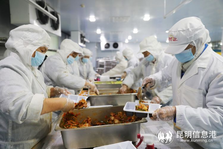 昆明信息港訊 記者上官艷君 1月26日,位于云南省昆明市呈貢區(qū)昆明南站旁的高鐵冷鏈套餐生產(chǎn)基地內(nèi),隨著春運首日冷鏈套餐供應(yīng)計劃下達,生產(chǎn)線全部工人開始忙碌起來,撿菜洗菜、智能炒菜、人工分包、機器預(yù)冷、傳送包裝,飯菜的香氣也在基地內(nèi)空氣中彌散開來。