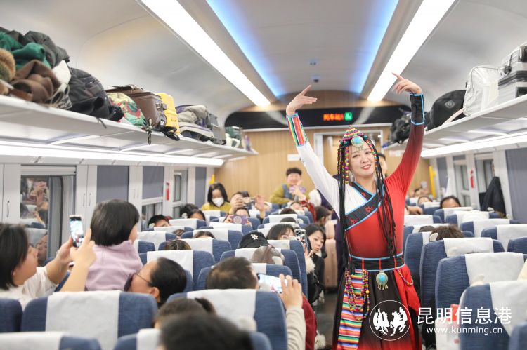 活動現(xiàn)場,鐵路職工表演了歌曲《坐著動車去老撾》、換裝表演《鐵路制服變遷T臺秀》、快板《旅途漫漫文明伴 平安鐵路平安行》、歌曲《七彩天路》、朗誦《鐵路旅客文明出行倡議》、舞蹈《“溫馨春運、文明相伴”快閃》等文藝節(jié)目;在昆明南站候車廳設(shè)置文明出行承諾簽名打卡,邀請旅客簽名,發(fā)放文明宣傳折頁、贈送文創(chuàng)產(chǎn)品;開展了“送萬福進萬家”新春送福活動,鐵路書法協(xié)會會員在現(xiàn)場寫對聯(lián)、福字等贈送旅客;在C281次等列車上還開展了文明出行知識問答、文明出行宣傳、發(fā)放文明出行宣傳折頁等活動。