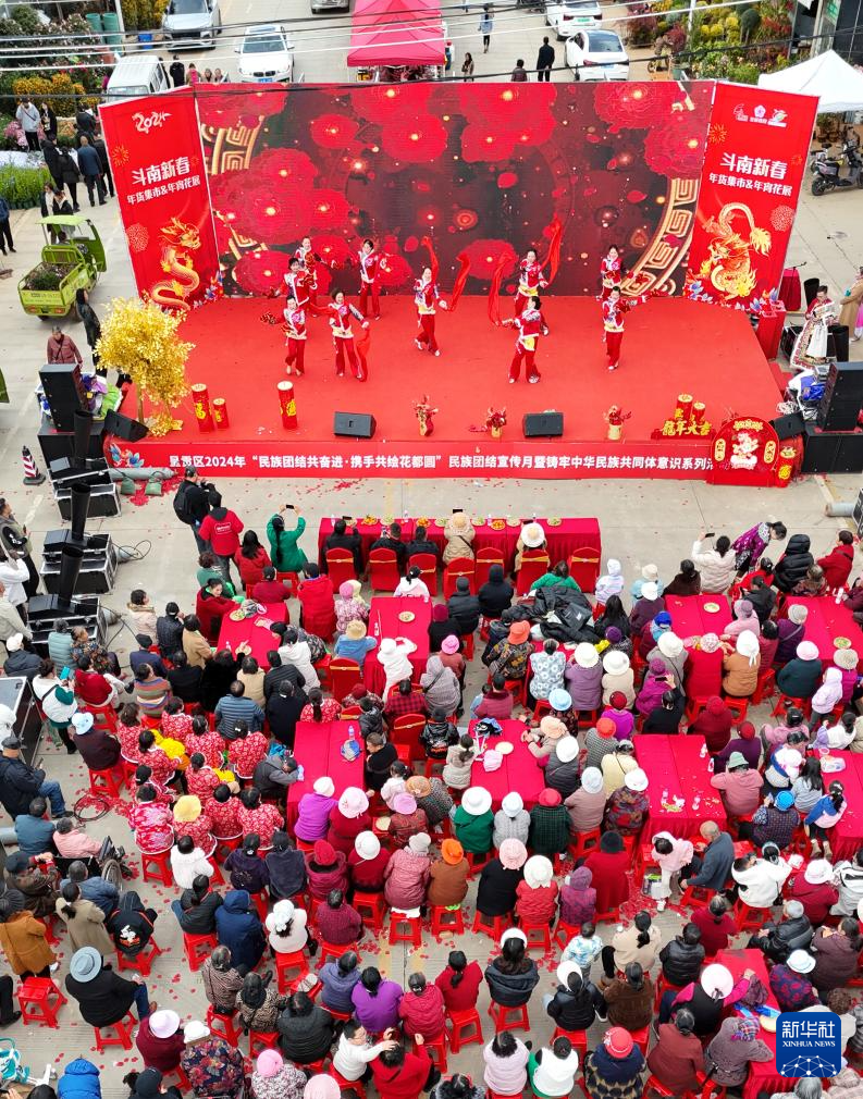 1月27日,市民在斗南街道觀看新春舞蹈表演(無(wú)人機(jī)照片)。