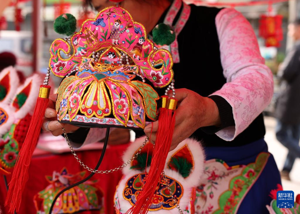 這是1月27日在斗南街道年貨集市拍攝的刺繡產(chǎn)品。
