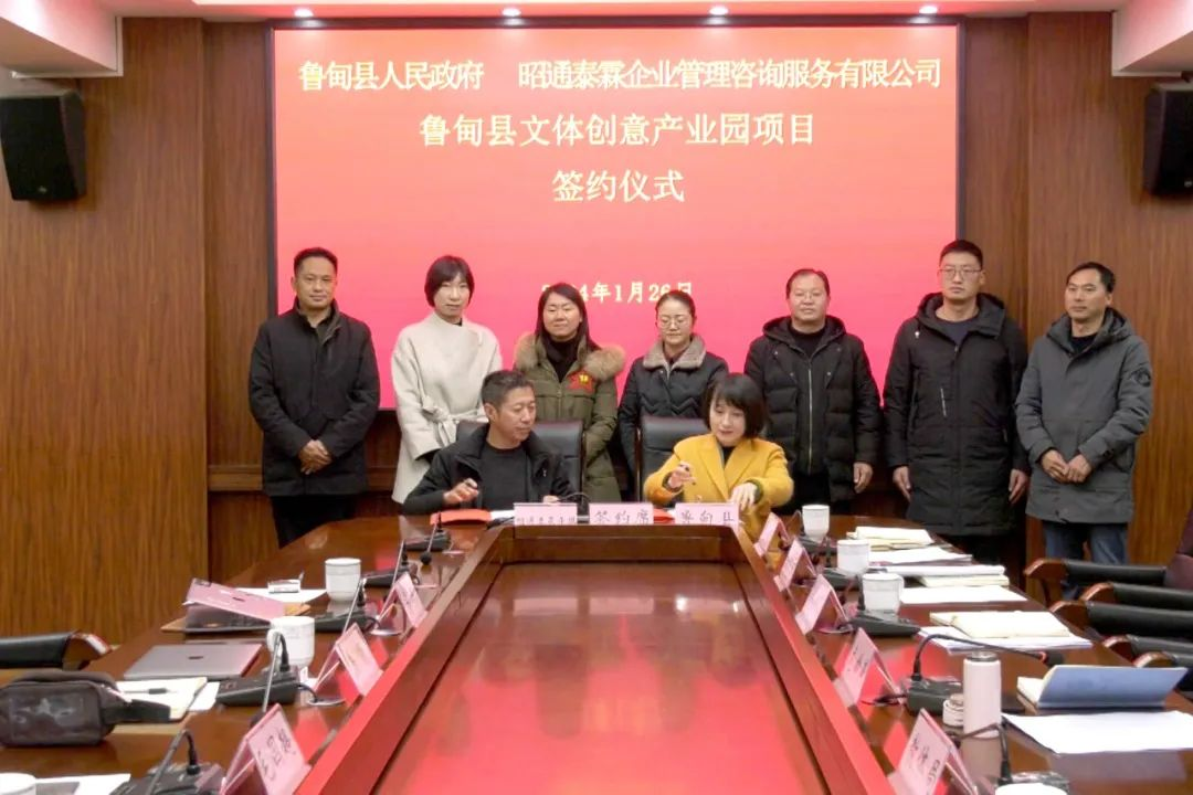 1月26日,魯?shù)榭h人民政府與昭通泰霖企業(yè)管理咨詢服務(wù)有限公司簽訂魯?shù)榭h文體創(chuàng)意產(chǎn)業(yè)園項(xiàng)目合作框架協(xié)議。