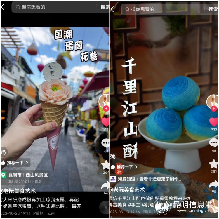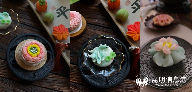 我會在各大社交平臺發(fā)布教程視頻,制作菓子的原材料是云南特有的白蕓豆,視頻發(fā)布定位是我工作室所在的西山風景區(qū),唐菓子的外形以昆明市的市花茶花為靈感,從制作到傳播過程,將云南、昆明的特色借助網絡平臺走向全國。