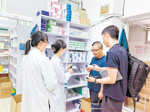 醫(yī)保招采部門調(diào)研基層醫(yī)療機構(gòu)集采藥品配備情況。 供圖