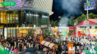 呈貢吾悅廣場夜間經(jīng)濟示范街區(qū)通過近一年的打造,從前置規(guī)劃、方案設(shè)計,招商洽談、進場裝修、氛圍營造、精彩開業(yè)、品質(zhì)強控等齊頭并進,規(guī)模初現(xiàn)雛形,街區(qū)效果呈現(xiàn)明顯,與2022年相比,室外街區(qū)客流量增長44%,銷售額增長79%;大商業(yè)客流量增長31%,銷售額增長11%;小吃街客流量增長8.8%,銷售額增長14%。