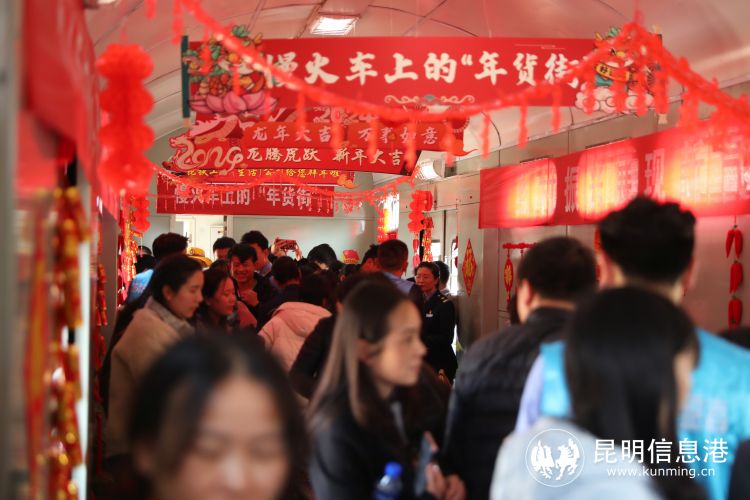 國鐵昆明鐵路工貿公司經理謝連華表示,結合沿線村民需求,公司精選200多種品質高、價格低的年貨和土特產,以全場5折的價格銷售,方便沿線村民在回家途中就可以采購到物美價廉的年貨。同時為農產品出村創(chuàng)造銷售的新通道。