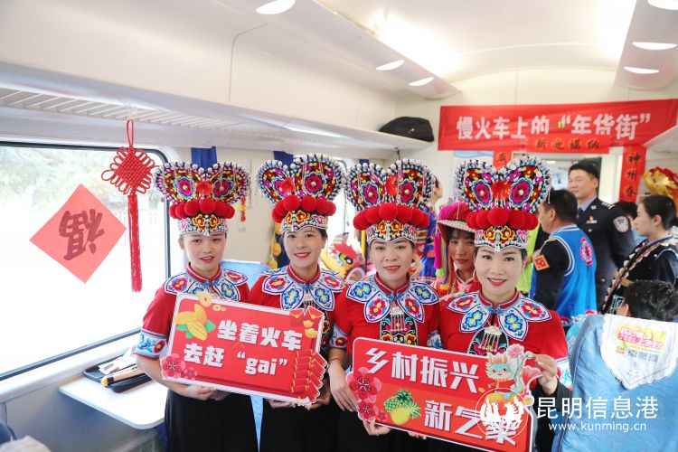 昆明信息港訊 記者上官艷君 2月2日,在昆明至元謀西的7466/5次列車上,一場“鄉(xiāng)村振興展現(xiàn)新氣象 鐵路幫扶情暖千萬家”為主題的公益性“慢火車”年貨街正式開張。