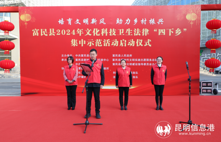 昆明信息港訊 記者段佳琪 讓先進文化走進千家萬戶,把科普和法律知識送到老百姓身邊,將健康服務搬到群眾“家門口”……2月4日,富民縣2024年文化科技衛(wèi)生法律“四下鄉(xiāng)”活動在富民縣新時代文明實踐中心啟動,為廣大群眾送上新春的關懷和溫暖。