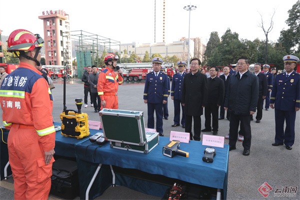 王寧、王予波一行來(lái)到五華區(qū)消防救援大隊(duì),檢查消防應(yīng)急戰(zhàn)備工作,參觀實(shí)戰(zhàn)演練,看望備勤人員,向全省消防救援官兵表示慰問(wèn)。記者 周燦 攝