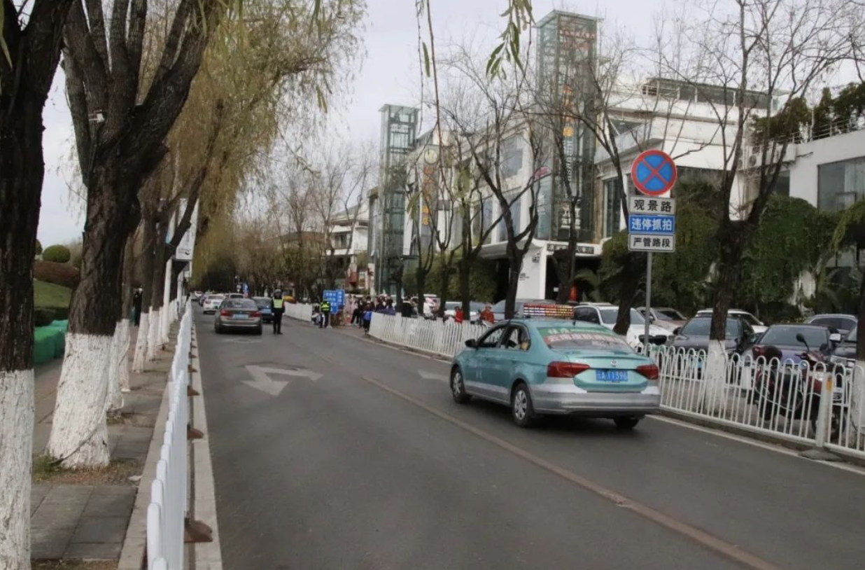 ? 對人車流量較大、安全隱患突出的觀景路(觀景路與迎海路交叉口至觀景路與紅塔西路交叉口路段)雙向禁止通行(沿線住戶、企業(yè)、單位機動車以及公交車除外)。