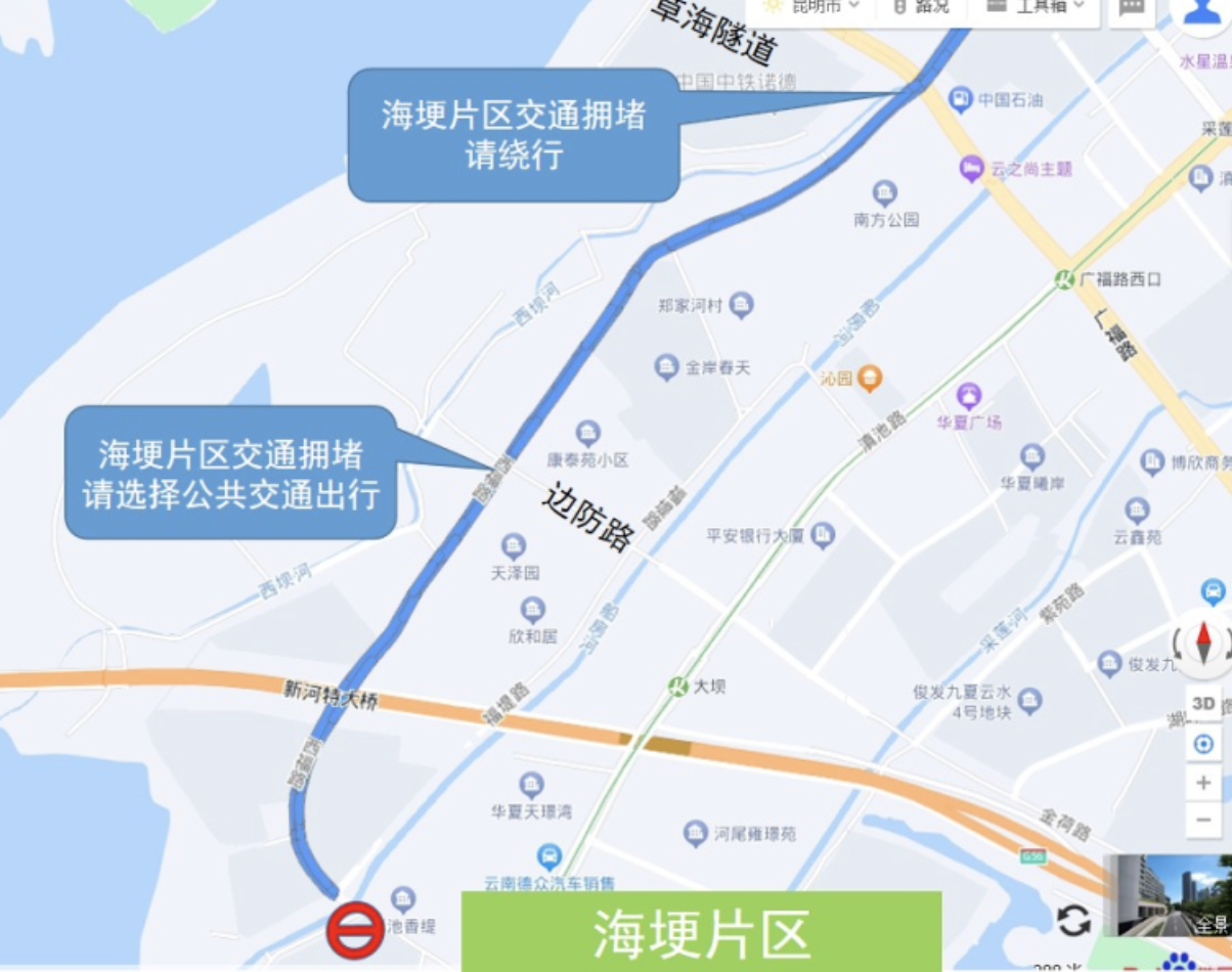?對西福路駛向閘口路和觀景路方向的車流進行管控。禁止機動車從西福路駛?cè)腴l口路和觀景路(公交車除外)。途經(jīng)西福路前往海埂片區(qū)的機動車請?zhí)崆皬膹V福路、滇池路方向繞行。