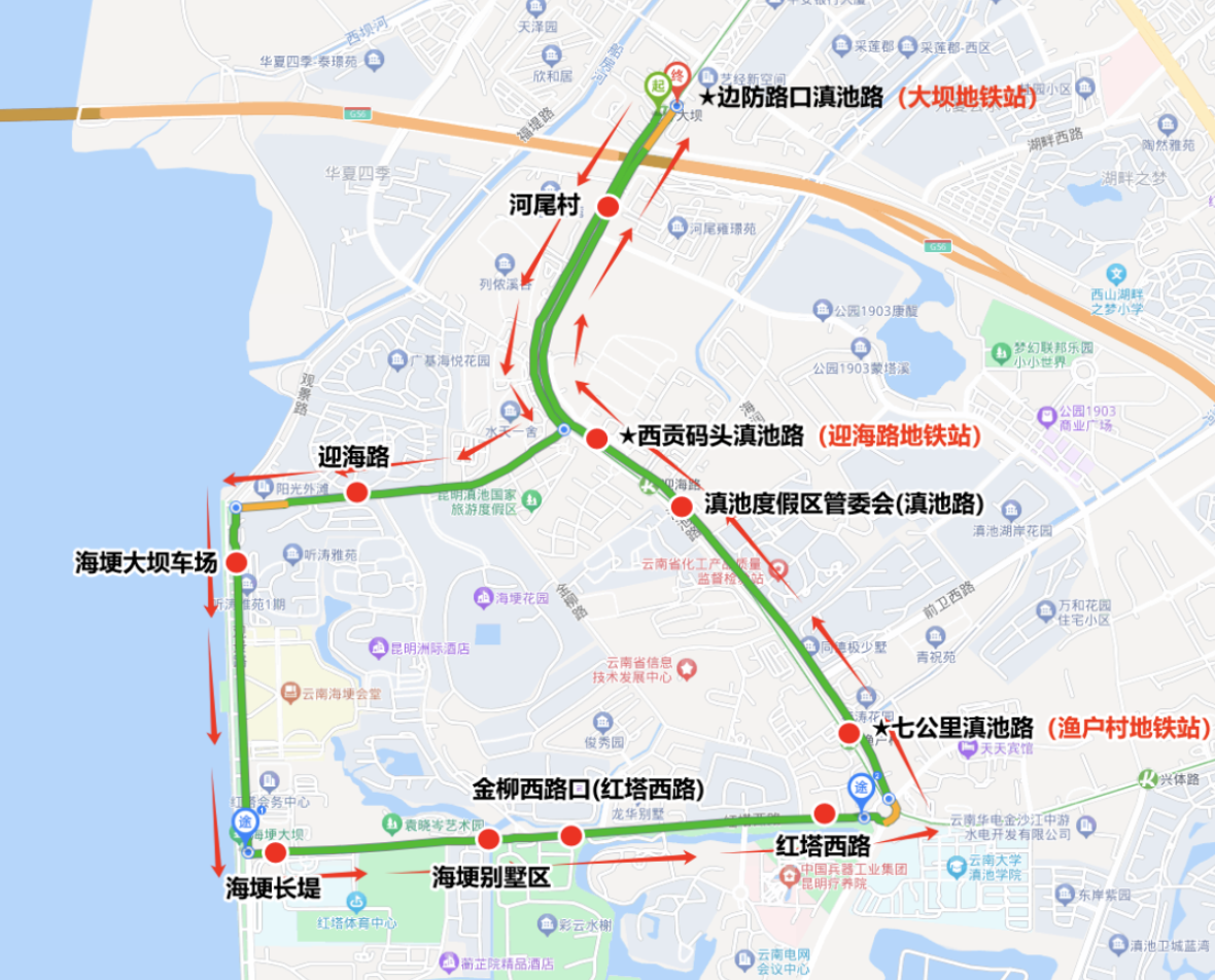 載客前往海埂大壩的出租車和網(wǎng)約車,可沿滇池路—迎海路—觀景路北段(50米處)進入專用通道,并在通道內(nèi)即停即走,快速上下客。