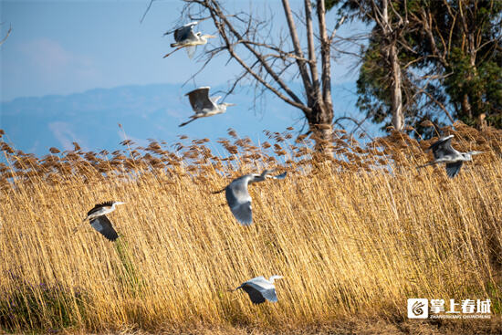 春節(jié)期間,云南省昆明市官渡區(qū)星海半島濕地公園里,一群群絢麗多彩的水鳥(niǎo)自由翱翔,宛如彩虹穿梭于碧波之間。湖邊的蘆葦叢中,灰鷺、白鷺、蒼鷺等優(yōu)雅的水鳥(niǎo)們時(shí)而翩翩起舞,時(shí)而靜靜佇立,守候著湖面上的一舉一動(dòng)。