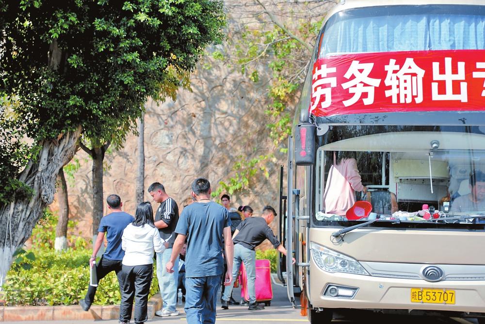 元陽縣外出務(wù)工人員登上勞務(wù)輸出專車。