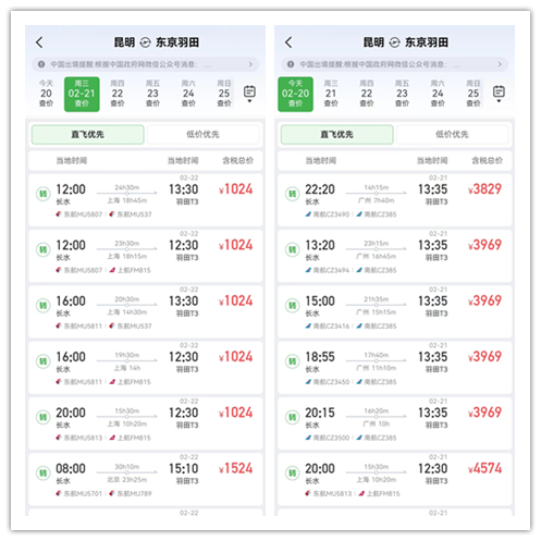 如果從昆明到東京