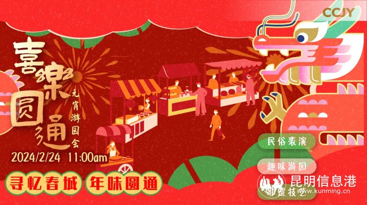 昆明信息港訊 歡天喜地過大年,紅紅火火鬧元宵。2月24日,一場(chǎng)妙趣橫生的元宵游園會(huì)將在圓通山·櫻花廣場(chǎng)舉行,民俗表演、非遺技藝、趣味游園、特色美食、老昆明復(fù)古場(chǎng)景等逛、賞、樂、食的內(nèi)容齊聚,將為廣大游客帶來一場(chǎng)熱鬧非凡的元宵盛會(huì)。