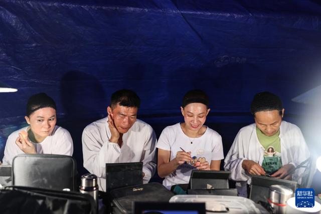 2月21日,海南定安縣瓊劇團(tuán)的演員們?cè)诙ò部h后山村演出前化妝。
