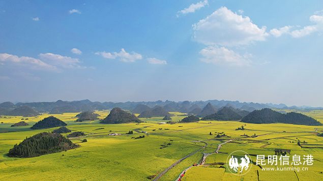 昆明信息港訊 記者上官艷君 正月未盡春已至,云南省曲靖市羅平縣的百萬(wàn)畝油菜花正值最佳賞花季。春節(jié)假期剛結(jié)束,乘坐火車前往羅平賞花的游客如約而至,百萬(wàn)畝油菜花在云南羅平壩子競(jìng)相綻放,放眼望去,一片一望無(wú)際的金色田野與翠綠群山交相輝映,一副生機(jī)勃勃的春日畫卷引人入勝。