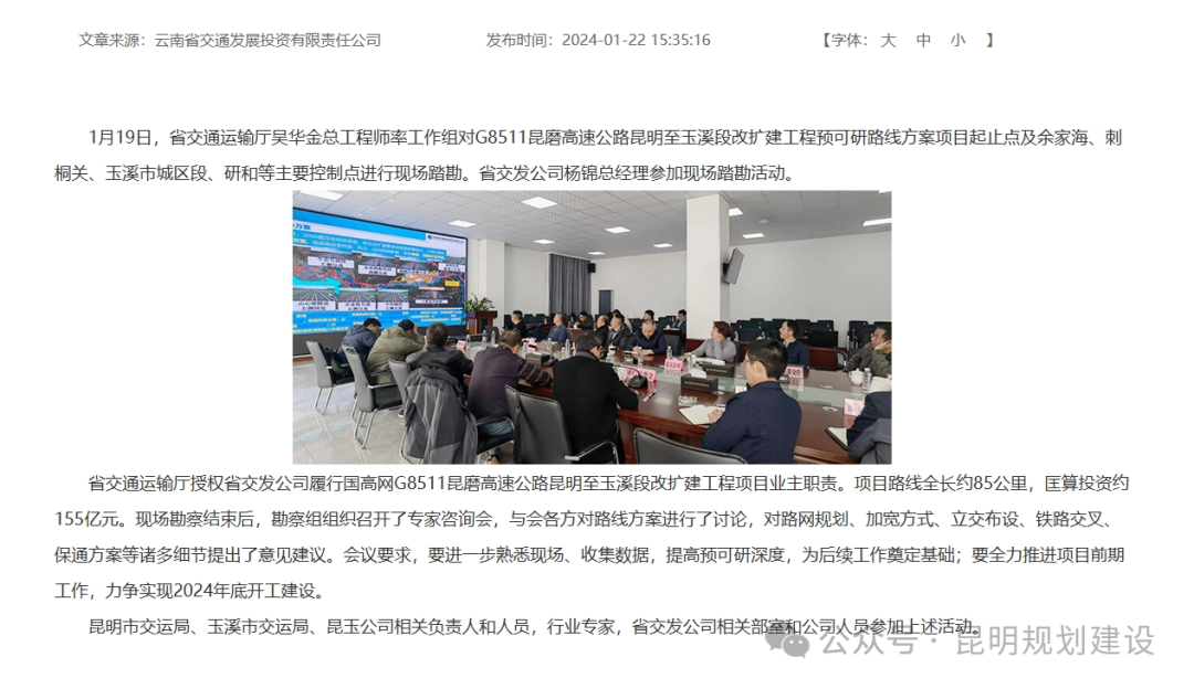 今年1月,云南省交通發(fā)展投資有限責任公司發(fā)布消息,省交通運輸廳授權省交發(fā)公司履行國高網(wǎng)G8511昆磨高速公路昆明至玉溪段改擴建工程項目業(yè)主職責。