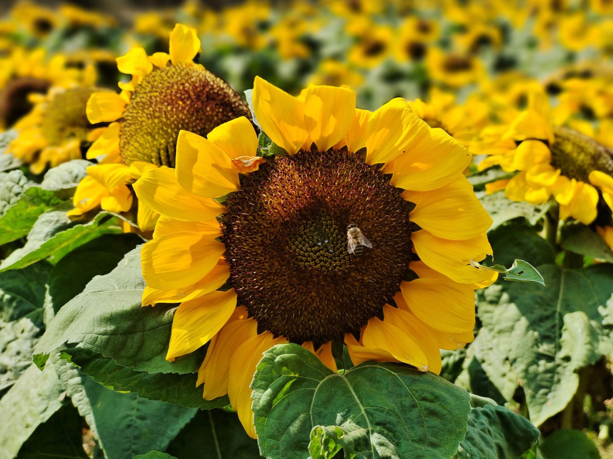 市民、游客穿梭于油畫般的花海中,一壟壟金燦燦的向日葵,昂著頭挺著胸站立在田間,三兩只小蜜蜂不停地嗡嗡飛舞于花間。有的市民成群結(jié)隊賞花,有的市民帶著孩子悠閑自在地走走停停,花田間傳來了陣陣歡聲笑語。