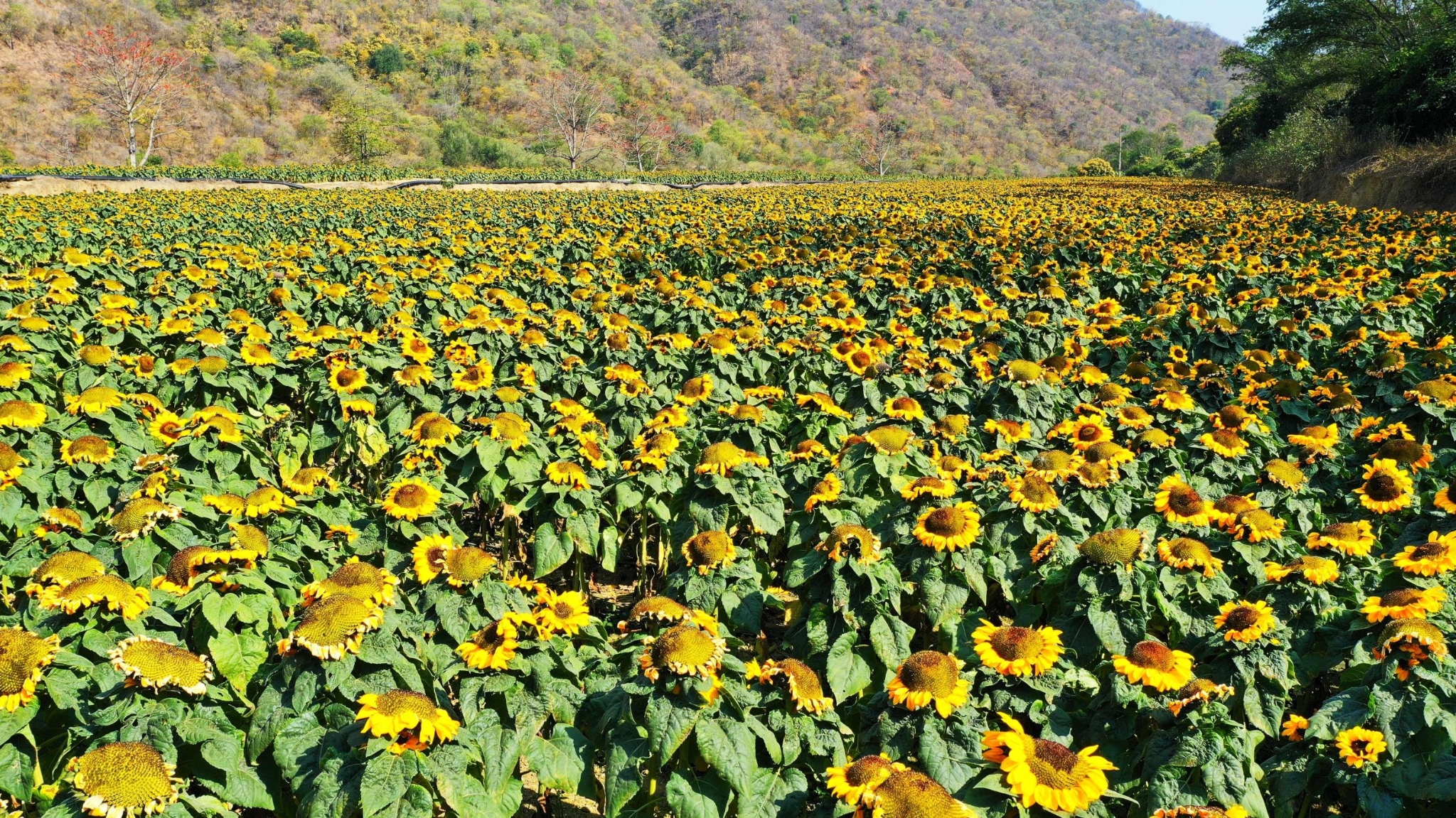近段時間,新平縣戛灑鎮(zhèn)南蚌社區(qū)的向日葵基地里,連片的向日葵花開“成?!保吮姸嗍忻?、游客前往拍照、游玩。