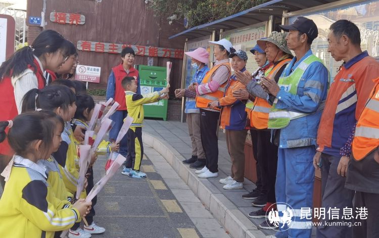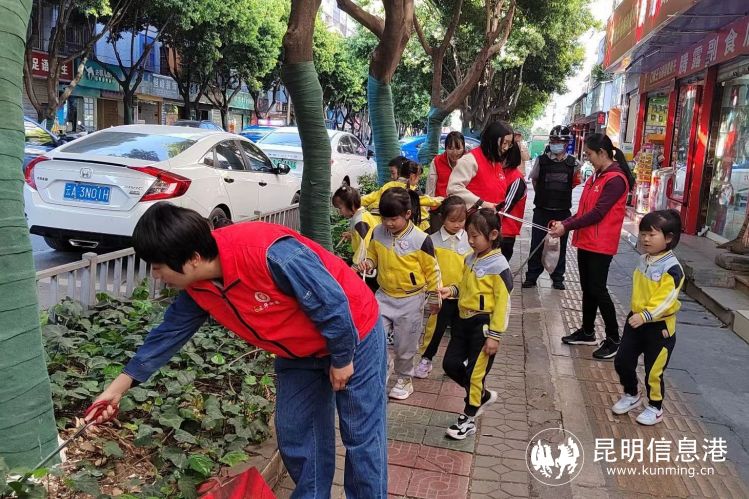 3月5日當天,幼兒園特邀周邊環(huán)衛(wèi)工人與幼兒進行了互動,并讓孩子們?yōu)榄h(huán)衛(wèi)工人獻上鮮花和礦泉水,以表達對環(huán)衛(wèi)工人的敬意和感謝。隨后,黨支部組織黨員志愿者及幼兒代表,前往白云社區(qū)進行志愿者清掃服務,收獲了路人對“小雷鋒”的稱贊。