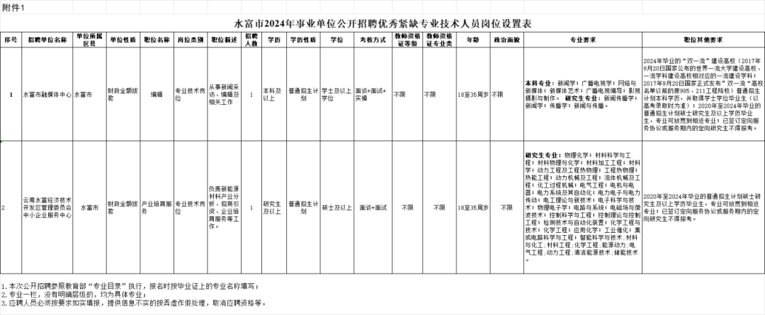 水富經(jīng)濟技術(shù)開發(fā)區(qū)中小企業(yè)服務(wù)中心1名、水富市融媒體中心1名。