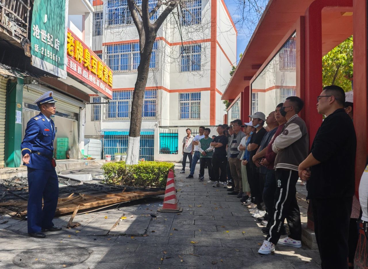 3月9日,臨翔區(qū)消防救援大隊(duì)聯(lián)合應(yīng)急管理、住建、市場(chǎng)監(jiān)管等部門將消防安全教育課堂搬到了火災(zāi)遺跡現(xiàn)場(chǎng),就近組織五十余戶商鋪業(yè)主及住戶、物業(yè)管理人員聽(tīng)法學(xué)法防災(zāi)。