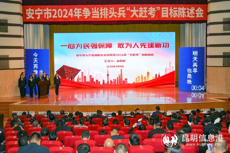 昆明信息港訊 記者楊雁 3月9日,安寧市2024年?duì)幃?dāng)排頭兵“大趕考”目標(biāo)陳述會(huì)在安寧會(huì)堂召開(kāi)。陳述會(huì)上,安寧市人力資源和社會(huì)保障局明確提出,為了在“大趕考”的賽道上跑出安寧人社加速度,2024年安寧人社將努力推動(dòng)以下幾項(xiàng)重點(diǎn)工作:實(shí)現(xiàn)入駐安寧市人力資源服務(wù)產(chǎn)業(yè)園人力資源服務(wù)機(jī)構(gòu)達(dá)25家以上;實(shí)現(xiàn)人力資源服務(wù)產(chǎn)業(yè)園產(chǎn)值達(dá)10億元以上;全年提供就業(yè)崗位不低于1萬(wàn)個(gè),促進(jìn)新增就業(yè)6000人以上;建成昆明市級(jí)返鄉(xiāng)創(chuàng)業(yè)園1個(gè);年內(nèi)培養(yǎng)企業(yè)新型學(xué)徒不少于200名,為安寧市建設(shè)云南省縣域社會(huì)主義現(xiàn)代化先行區(qū)貢獻(xiàn)人社力量。