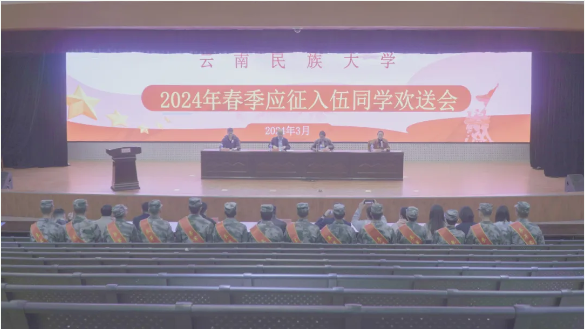 3月13日上午,云南民族大學(xué)2024年春季大學(xué)生應(yīng)征入伍歡送儀式在嵩明縣民兵綜合訓(xùn)練基地舉行。云南民族大學(xué)黨委委員、副校長(zhǎng)段云學(xué),相關(guān)學(xué)院負(fù)責(zé)人、輔導(dǎo)員,校武裝部相關(guān)人員以及從云南民族大學(xué)應(yīng)征入伍的14名新兵參加了歡送儀式。