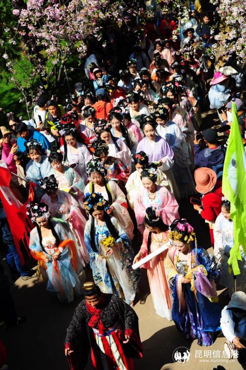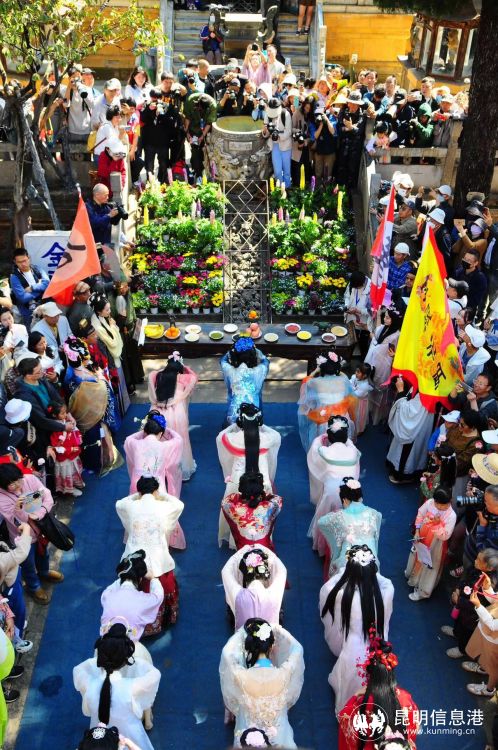 據(jù)了解,花朝節(jié)至遲在唐代即已形成,史籍中多有記載。金殿近年來持續(xù)舉辦花朝節(jié),是借中國傳統(tǒng)民俗節(jié)慶,深挖歷史傳說、云南植物文化、中國傳統(tǒng)服飾文化、地方民俗文化,推出的一項重要的花事活動,展示昆明春季美麗的自然景觀和人文風貌,打造傳統(tǒng)與現(xiàn)代相結合的文旅活動,如今已成為昆明市以花為媒的的品牌旅游文化活動。