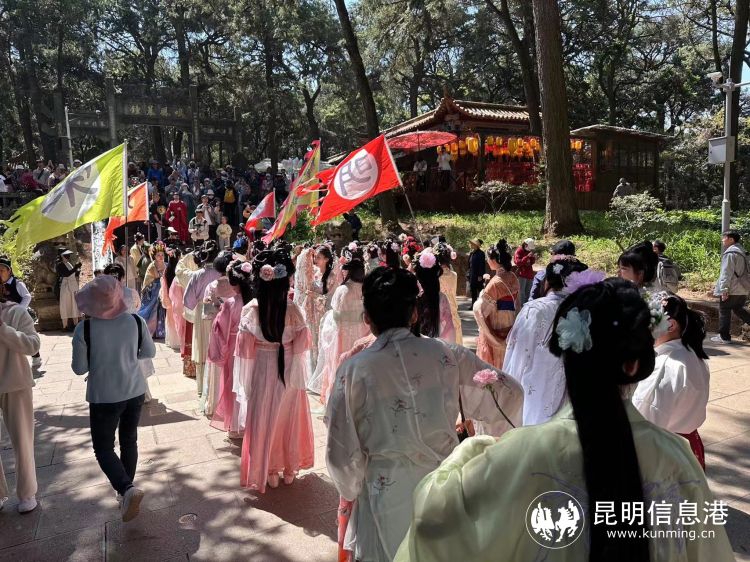 金殿名勝區(qū)作為昆明最著名的歷史文化與園林植物景觀并存的景點,已連續(xù)舉辦了7年花朝節(jié)。每逢花朝當日,滿園春花與傳統(tǒng)活動可吸引上千漢服愛好者身著歷代傳統(tǒng)服飾前來祝賀,現(xiàn)場蔚為壯觀。祈愿、傳統(tǒng)知識講座、民俗游園、漢服巡游表演、傳統(tǒng)技藝比賽、非遺展示、漢服集市等系列活動令金殿花朝節(jié)口碑載道,已然成為一張影響力斐然的城市文化名片。