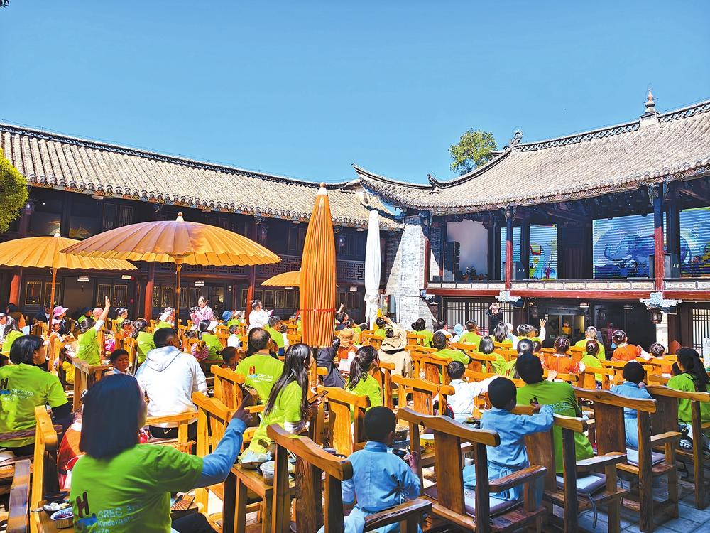 貴州會(huì)館成為會(huì)澤活化利用的首個(gè)會(huì)館。道成集團(tuán)銅都文化旅游公司對(duì)貴州會(huì)館的歷史建筑、墻體、柱子等進(jìn)行修復(fù)和保護(hù),恢復(fù)其原貌,并設(shè)立文化交流館,通過(guò)實(shí)物、圖片、文獻(xiàn)等形式,弘揚(yáng)中華傳統(tǒng)文化。在保護(hù)和修復(fù)會(huì)館建筑的基礎(chǔ)上,還充分利用好會(huì)館的舞臺(tái),引入茶道、文藝演出、琴藝表演等相關(guān)業(yè)態(tài),開(kāi)展歌舞劇演出、非遺展演、書(shū)畫(huà)攝影、文藝表演等豐富多彩的文化活動(dòng),將會(huì)館打造成集文化推廣、宣傳介紹、多樣展示、休閑學(xué)習(xí)、產(chǎn)品展銷(xiāo)于一體的具有會(huì)澤特色的“傳統(tǒng)文化館”,真正盤(pán)活歷史文化資源,讓特色會(huì)館“亮”起來(lái)。2023年,貴州會(huì)館內(nèi)公共文化空間被重新賦能定位,賦予新功能的會(huì)館重新活泛起來(lái),成為會(huì)澤古城里新的文化空間。