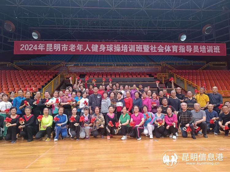昆明信息港訊 記者俞逍 3月28日,2024年昆明市老年人健身球操培訓班暨社會體育指導員培訓在昆明體育館圓滿落幕。在為期三天的時間里,從開班培訓到實踐操作再到理論考核,各參訓隊員以飽滿的熱情、昂揚的斗志完成了此次培訓,并取得相應等級社會體育指導員證書。