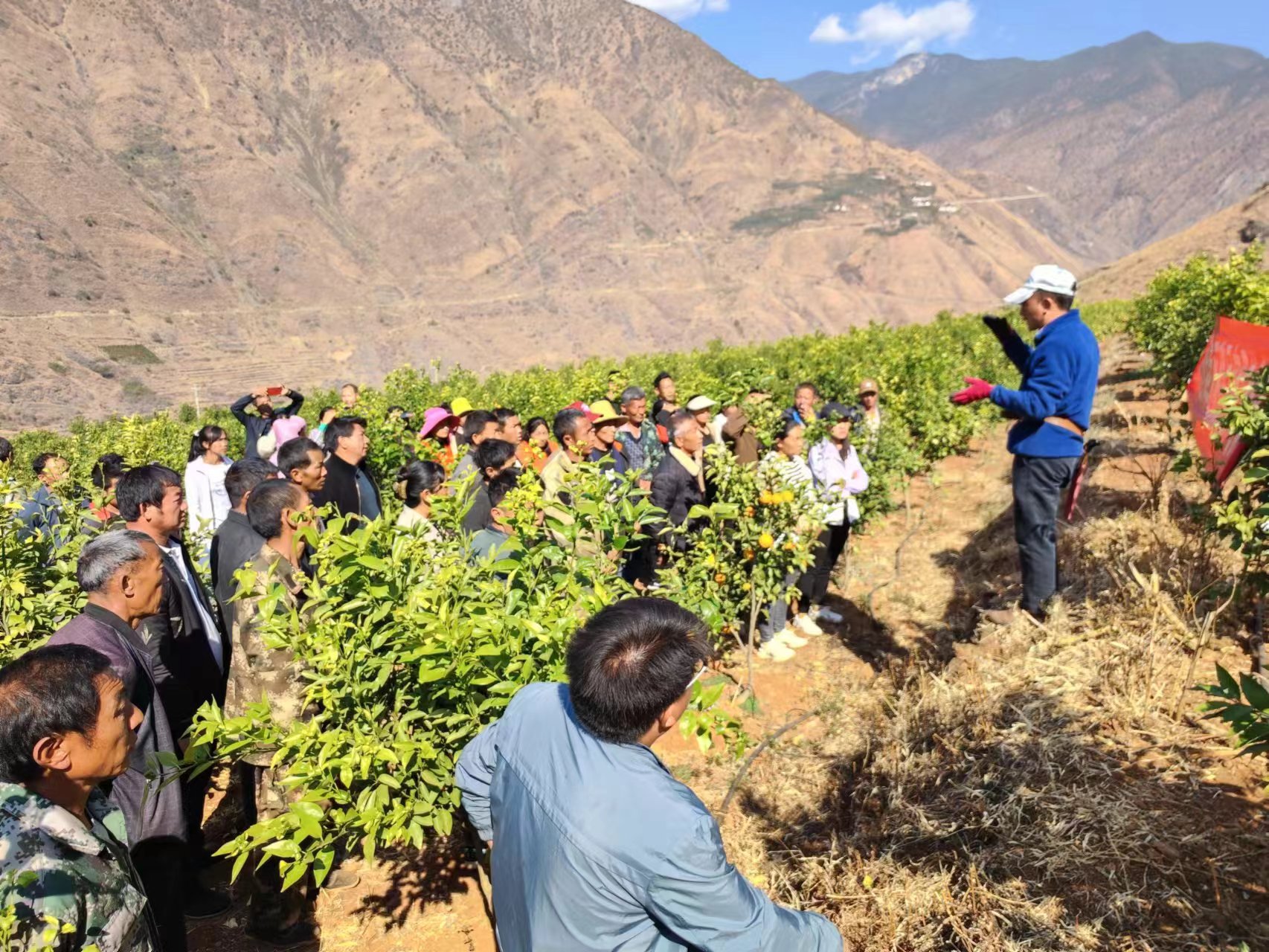 “祖祖輩輩都沒種過沃柑,咋弄呀?”面對村民的顧慮,駐村工作隊(duì)積極對接農(nóng)業(yè)農(nóng)村局等相關(guān)行業(yè)部門,邀請專業(yè)技術(shù)人員,給農(nóng)民進(jìn)行面對面技術(shù)培訓(xùn),指導(dǎo)苗木修剪、疏果、病蟲害防治等管理技術(shù)。產(chǎn)業(yè)快速發(fā)展的背后,離不開科技的持續(xù)賦能。開展高效土肥水管理、病蟲害綜合防治……一項(xiàng)項(xiàng)關(guān)鍵技術(shù)攻關(guān),為沃柑優(yōu)質(zhì)高效發(fā)展提供了有力支撐。駐村工作隊(duì)還邀請鄉(xiāng)農(nóng)技站專家到龍通村掛聯(lián)指導(dǎo),組織無人機(jī)撒藥等,“以前站在地上種,現(xiàn)在飛到天上種!”村民們都感到很新奇。